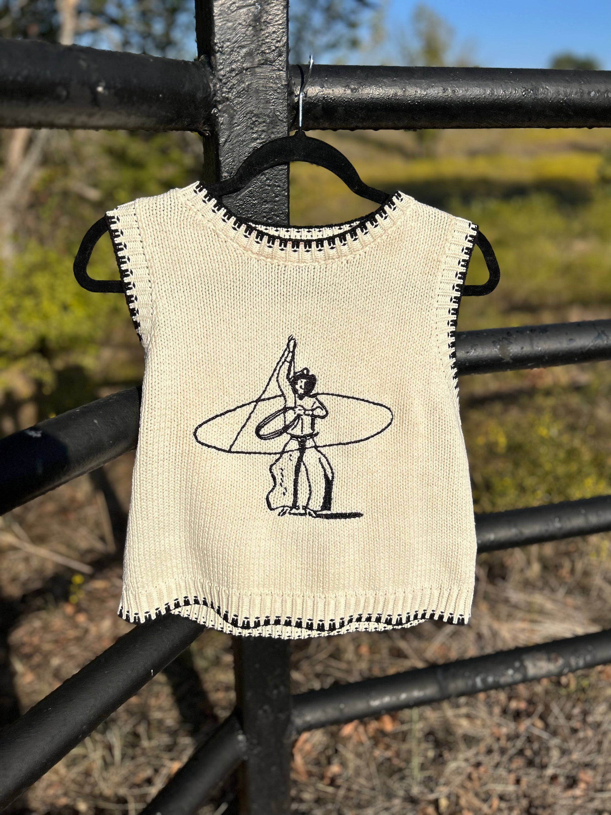 The Trick Roper sweater vest brings a fresh, western-inspired edge to your wardrobe. Slightly cropped for a modern silhouette, it pairs perfectly with high-waisted jeans or layered over a crisp shirt. our 5'10" model wears a small for a sleek fit—this vest combines trend-forward style with classic western details for effortless versatility.